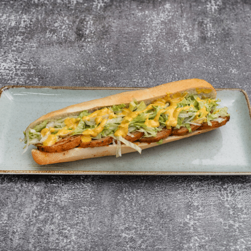 Kip, gesmolten kaas, samurai saus. Geserveerd met salade